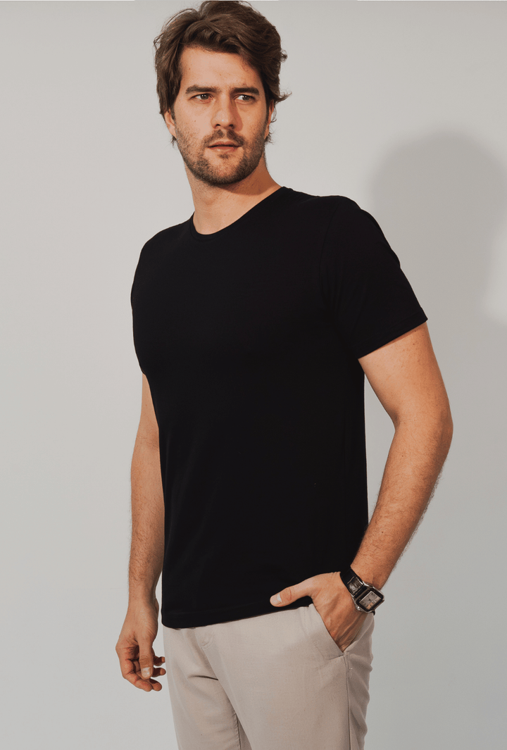 Basta lavar em água fria ou morna, usar sabão neutro e secar à sombra. Cuidados simples que preservam a maciez, a cor e o caimento da sua camiseta por muito mais tempo.