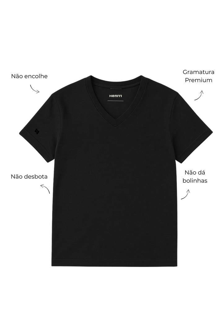 Sua gola V é feita de forma mais sútil que as do mercado, levando um ar mais despojado, sem ficar exageradamente aberta.