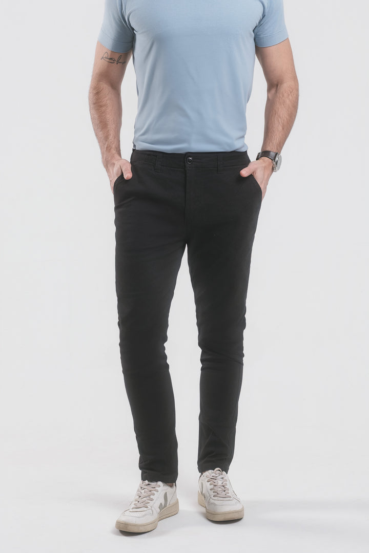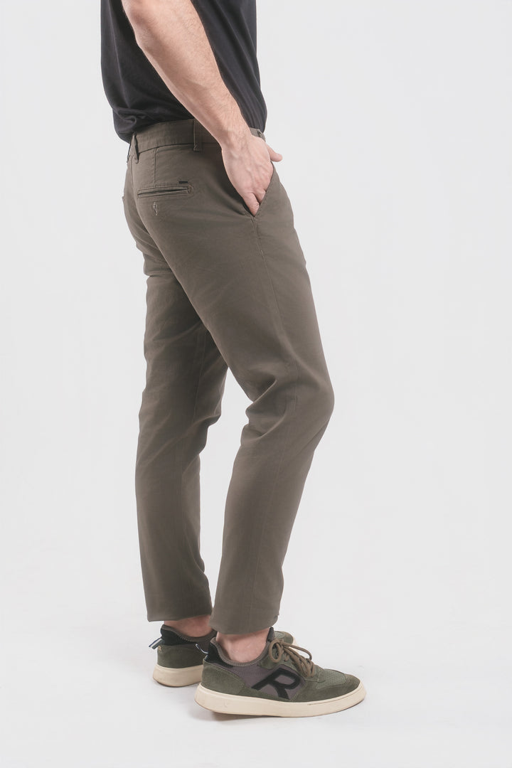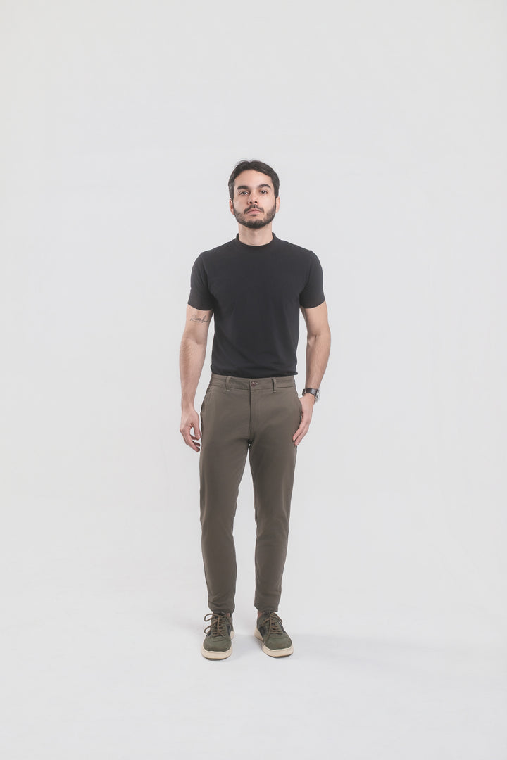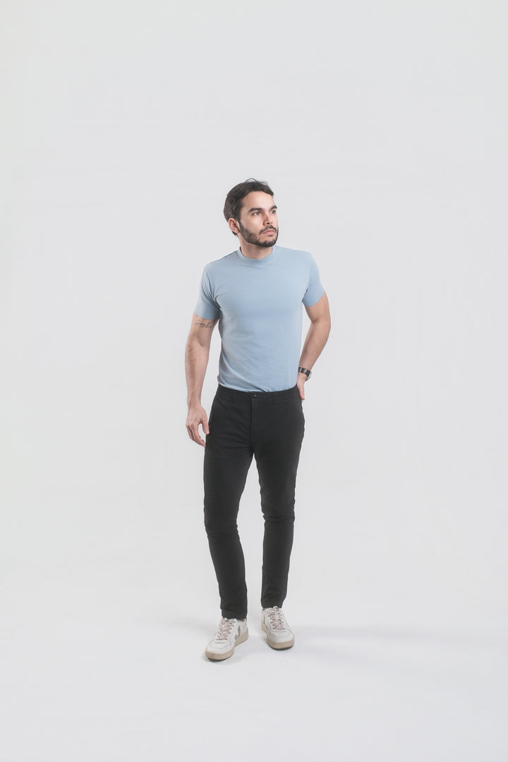 Confeccionada em sarja de alta qualidade e modelagem alfaiataria, esta calça oferece um caimento impecável com toque suave e elasticidade na medida certa para liberdade de movimento.