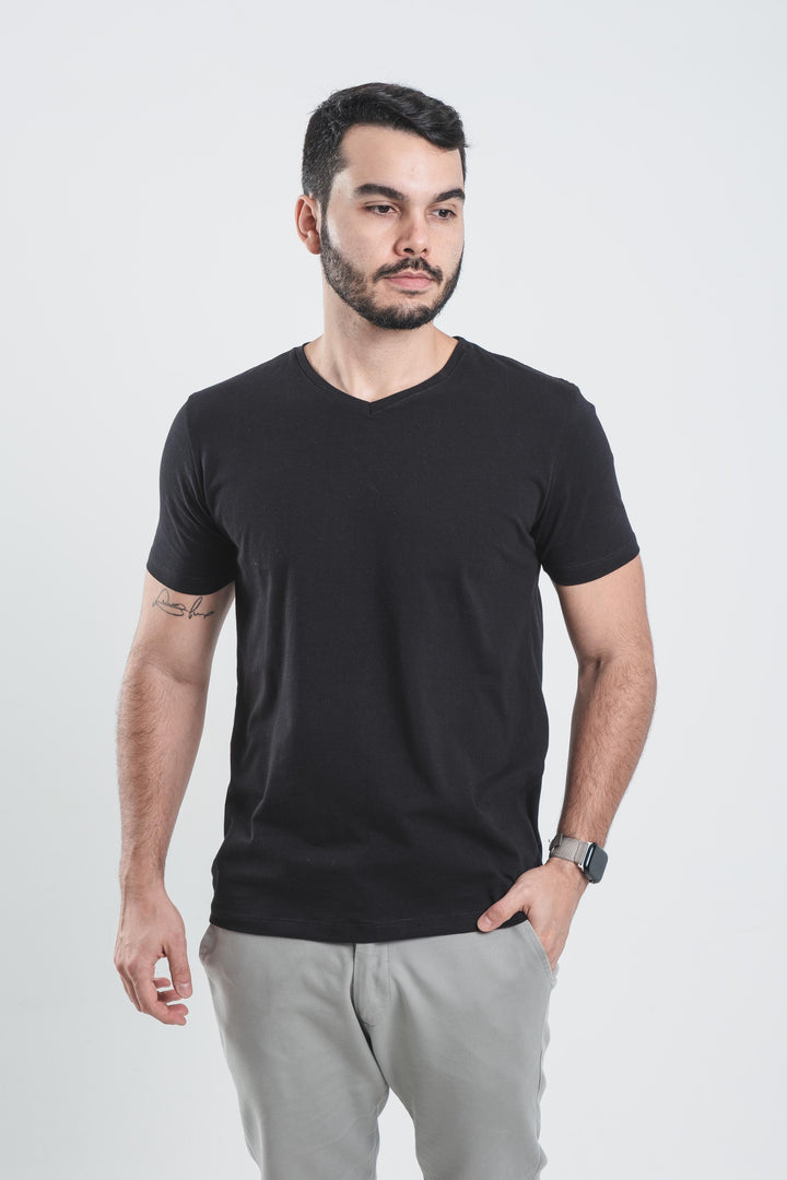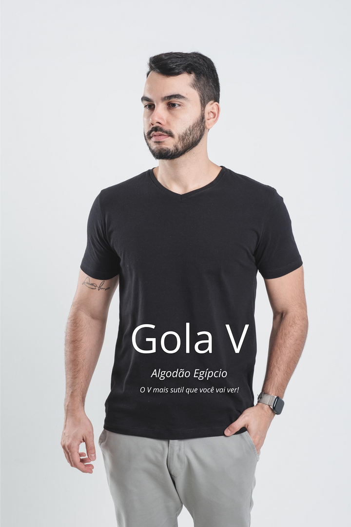 Kit com 3 camisetas gola V, escolha o tamanho e cor de preferência.